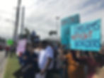 Protesters carrying signs in support of "Dreams Without Borders".